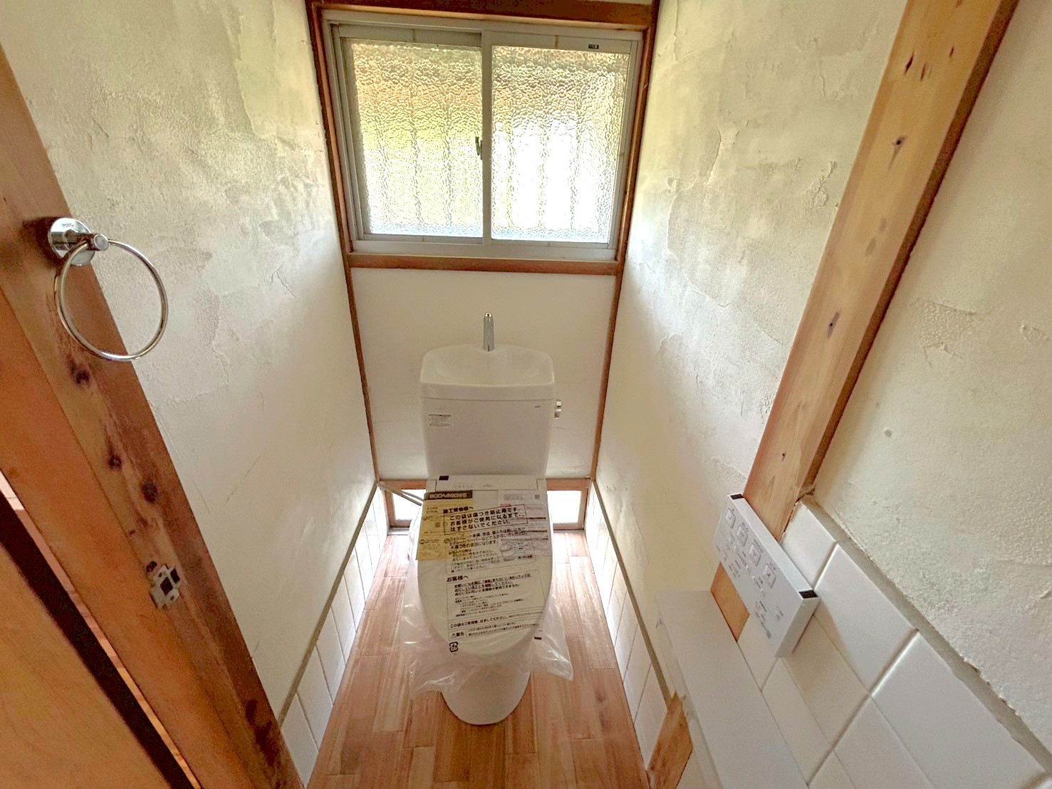 ①水回り、全室の壁を漆喰塗り(湿気が溜まりやすい水回りには天然素材で調湿 漆喰には消臭や抗菌効果があり、カビ等の発生や匂いを抑制します。)